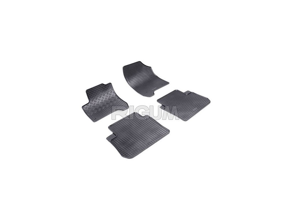Zvýšený okraj a štruktúra mriežky - Zo spodnej strany gumových autokobercov Rigum sú gumové výstupky, ktoré spolu s uchytením na originál fixátory zabezpečia, aby sa rohože po podlahe neposúvali pod pedále šoféra a neohrozilo tým prevádzku pri jazde. Rigum rohože majú takmer identický dizajn ako výrobca Frogum alebo Rigum, len guma je z týchto 3 výrobcov u Rigum najtenšia.