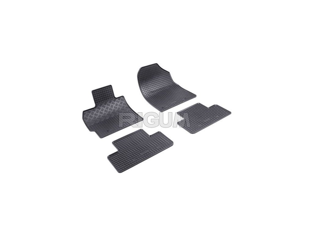 Zvýšený okraj a štruktúra mriežky - Zo spodnej strany gumových autokobercov Rigum sú gumové výstupky, ktoré spolu s uchytením na originál fixátory zabezpečia, aby sa rohože po podlahe neposúvali pod pedále šoféra a neohrozilo tým prevádzku pri jazde. Rigum rohože majú takmer identický dizajn ako výrobca Frogum alebo Rigum, len guma je z týchto 3 výrobcov u Rigum najtenšia.